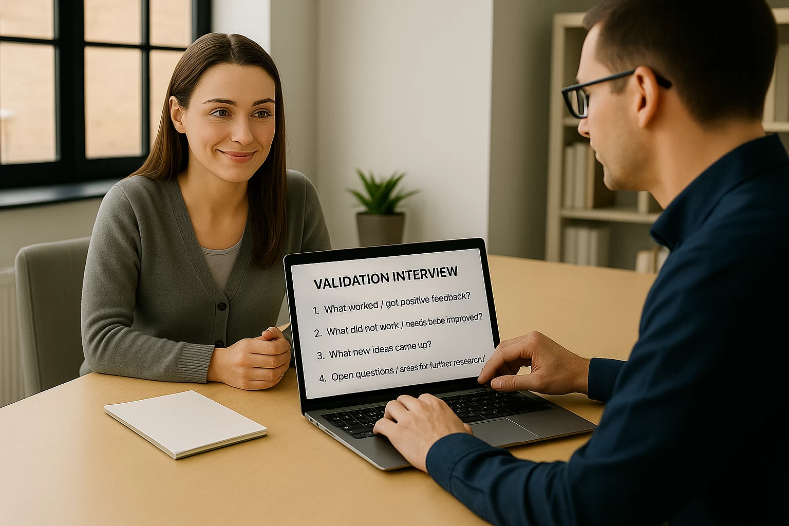 Test What Matters Most — With Real Users GooValid makes it easy to validate your assumptions before committing to build. The Validation Interview toolkit helps you conduct structured conversations with potential users, focusing on what worked, what didn’t, and what needs to be improved in your idea or MVP. It turns vague feedback into actionable signals by guiding you through key interview elements such as positive reactions, weak points, new ideas, and remaining open questions.